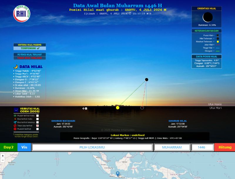 🌙 Hilal Tracker RHI - Kalkulator Posisi Hilal 🌙